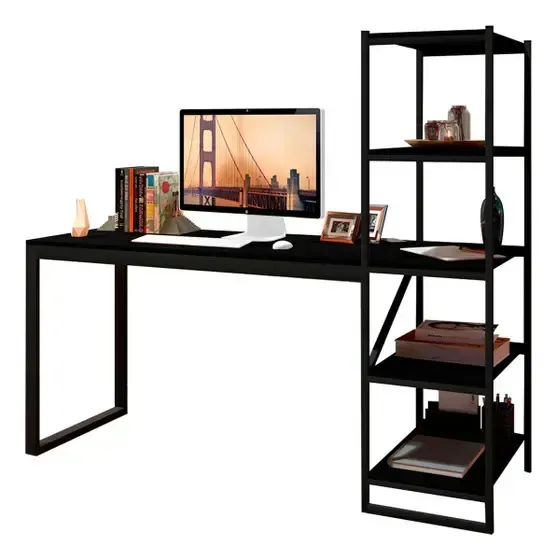 Escrivaninha Estudo Home Office Industrial Para Escritório Mesa Trabalho Com Prateleiras