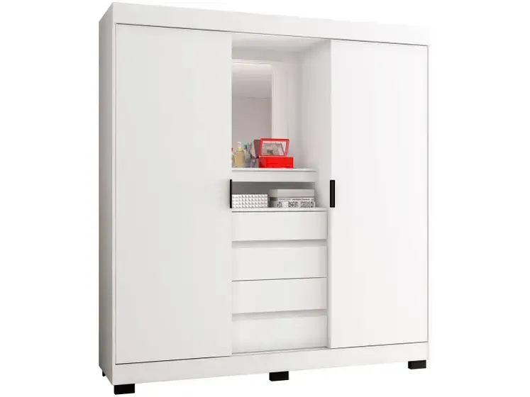 Guarda-roupa Casal com Espelho 4 Gavetas 2 Portas de Correr Araplac Benfica