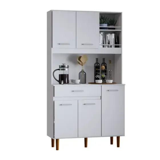 Cozinha Completa Bonatto com Armário e Balcão Branco Multiuso 5 Portas 1 Gaveta Multiuso Móveis Bonatto