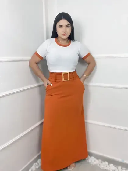 Conjunto Plus Size Saia Longa Fivela Moda Evangélica Feminina - Miss Flower