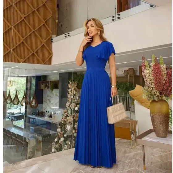 Conjunto Blusa e Saia Longa Plissada na Malha Lurex moda evangélica - sem marca