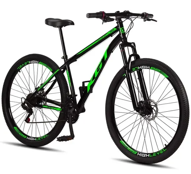 Bicicleta Aro 29 Aço Carbono KGT Freios a Disco Suspensão 21 marchas